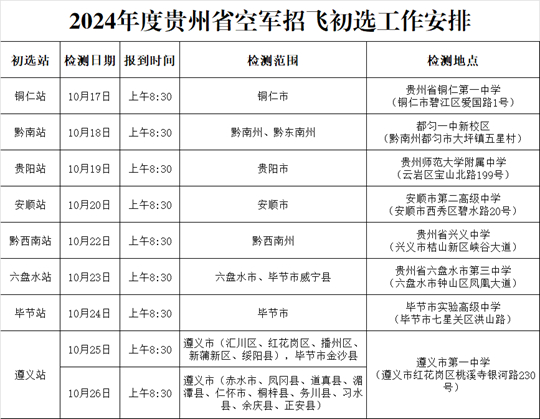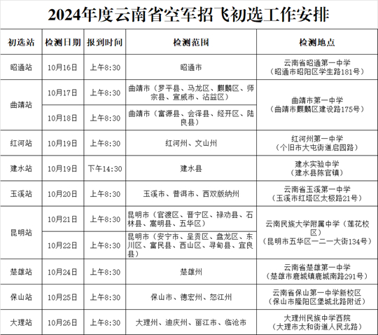| 2024年度重慶市、云南省、貴州省空軍招飛初選檢測安排 |