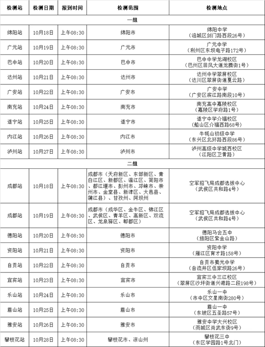 檢測(cè)安排如有變化,以空軍招飛局成都選拔中心通知為準(zhǔn)。聯(lián)系電話:028-85399171。