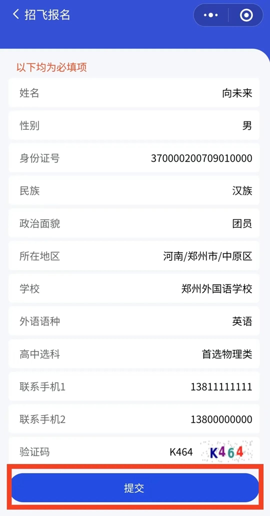 3.如實填寫學(xué)生基本信息,填寫完畢點擊“提交”;