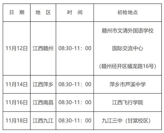 。4)認(rèn)真做好核驗。各招飛單位要指定專人認(rèn)真核驗考生身份信息,相關(guān)材料(或復(fù)印件)需由審核人簽字確認(rèn)并留存?zhèn)洳。各高中學(xué)校應(yīng)指定專人協(xié)助做好招飛初檢工作,確保初檢工作安全有序、公平公正。在初檢過程中,考生或家長如發(fā)現(xiàn)有違規(guī)違紀(jì)行為,可通過江西省教育考試院違規(guī)舉報郵箱(ksyjjjc@jxeea.cn)進(jìn)行舉報。