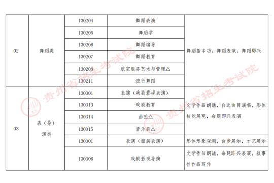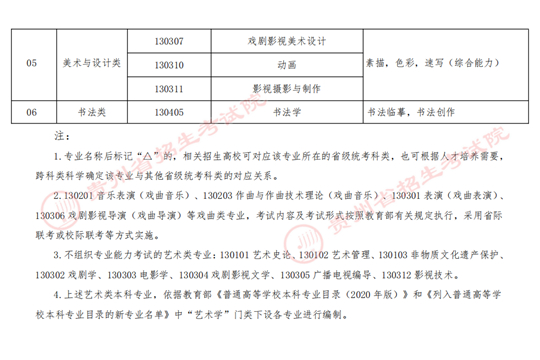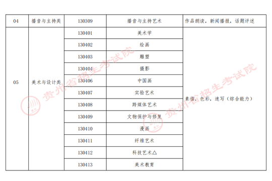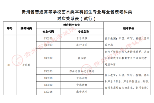 貴州省普通高等學(xué)校藝術(shù)類本科招生專業(yè)與全省統(tǒng)考科類對(duì)應(yīng)關(guān)系表(試行) 點(diǎn)擊查看
