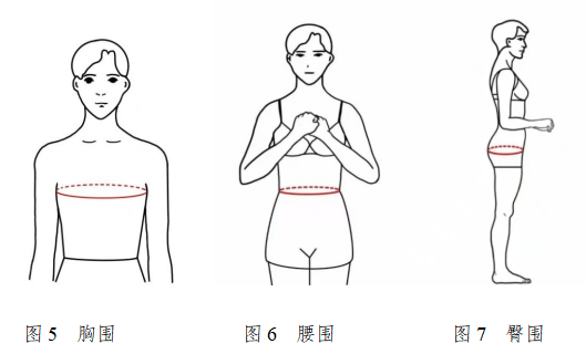 考生直立,兩腳分開與肩同寬,腿部放松。測(cè)量人員測(cè)量緊靠臀溝下方的最大水平圍長(zhǎng)(見圖9)。
