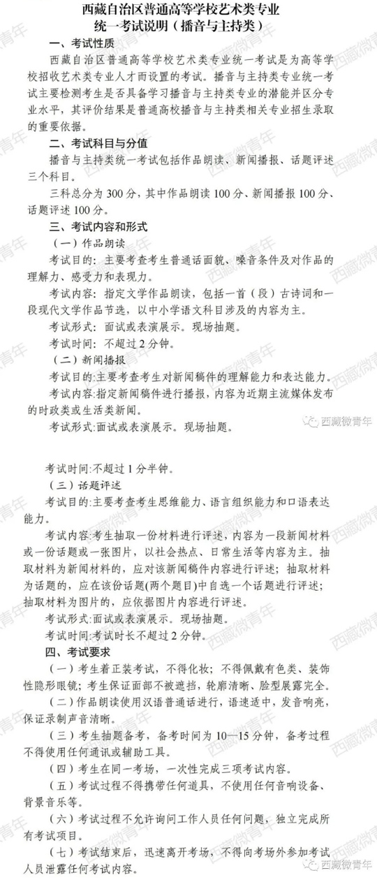 | 西藏自治區(qū)普通高等學校藝術(shù)類專業(yè)統(tǒng)一考試說明(播音與主持類) |