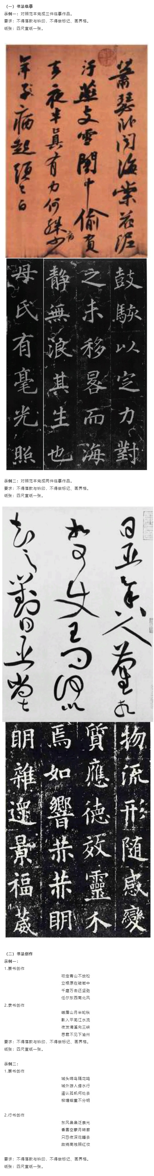 考試包括書(shū)法臨摹、書(shū)法創(chuàng)作兩個(gè)科目。