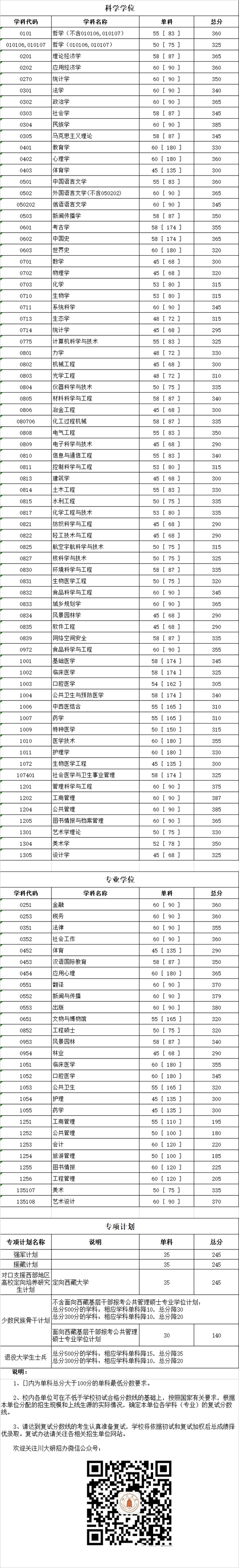 四川大學2019年碩士研究生入學考試初試合格分數(shù)線