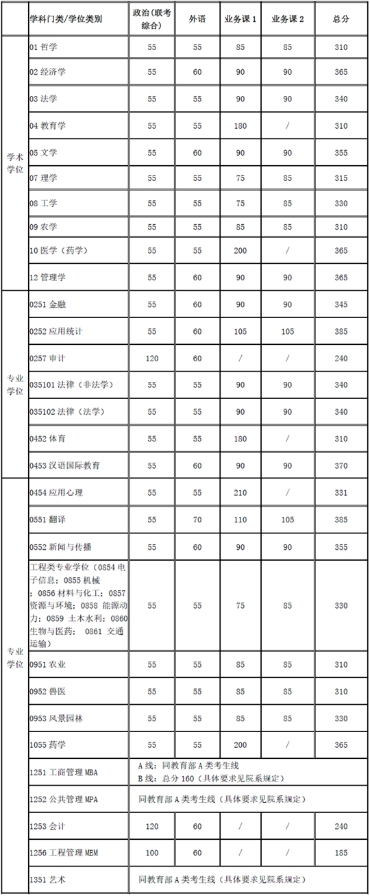 根據(jù)教育部有關(guān)文件精神,結(jié)合學校實際情況,經(jīng)校研究生招生領(lǐng)導小組會議研究決定,2020年碩士研究生入學考試復(fù)試基本分數(shù)線如下: