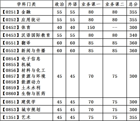 三、專業(yè)學位型碩士研究生(初試滿分300分專業(yè))