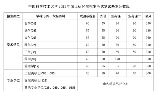 | 中國科學(xué)技術(shù)大學(xué)2021年碩士研究生招生考試復(fù)試基本分?jǐn)?shù)線 |