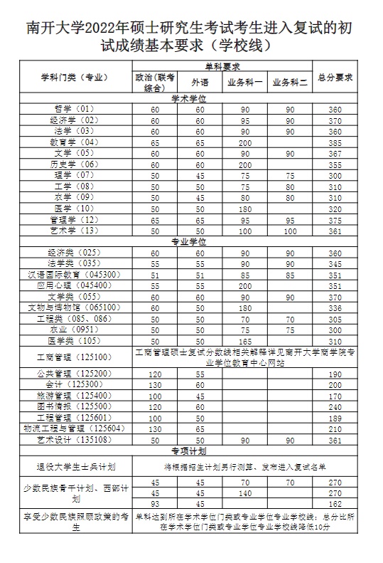 | 南開大學(xué)2022年碩士研究生考試考生進(jìn)入復(fù)試的初試成績基本要求(學(xué)校線) 點(diǎn)擊查看