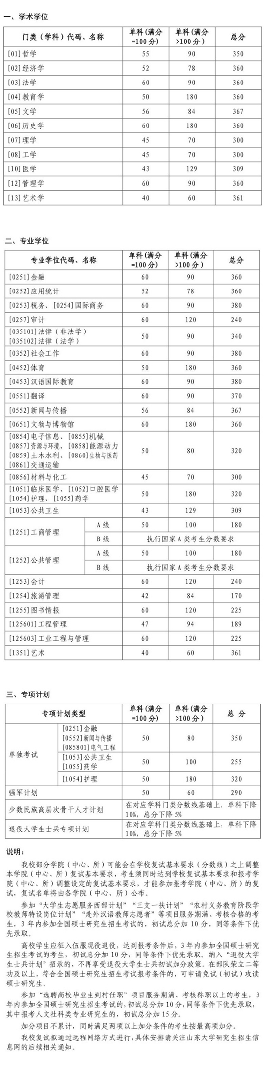 山東大學(xué)2022年碩士研究生招生考試考生進(jìn)入復(fù)試的初試成績(jī)基本要求