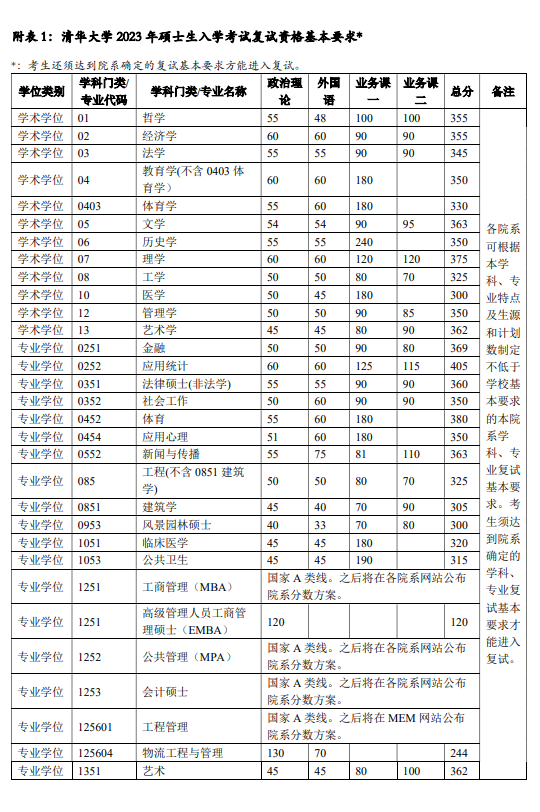 | 清華大學(xué)2023年碩士研究生招生復(fù)試基本分數(shù)線 |