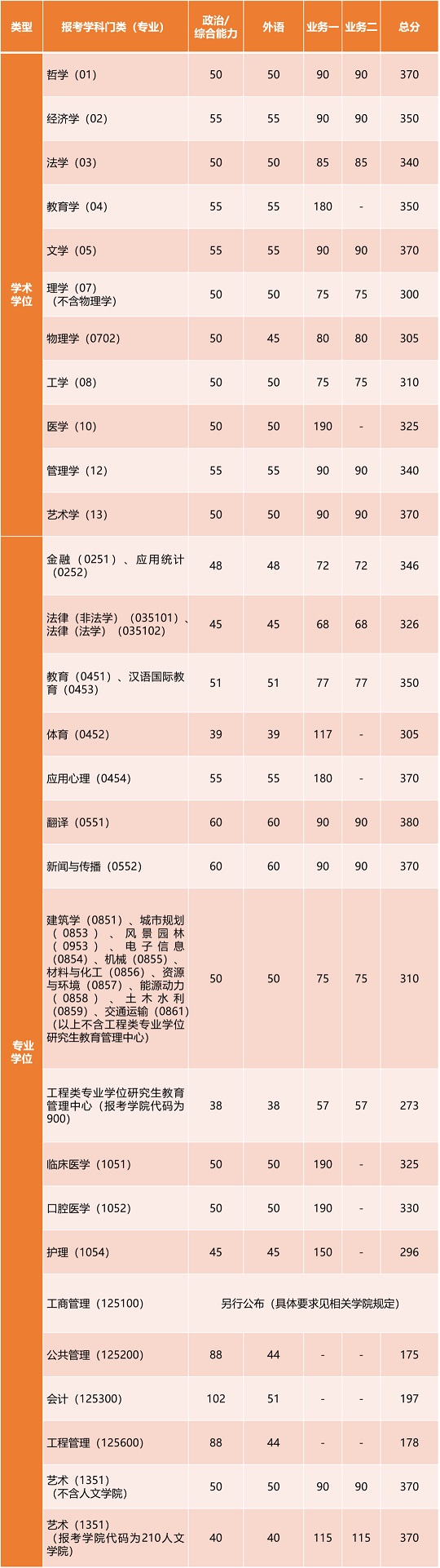 根據(jù)教育部有關(guān)文件精神,結(jié)合學(xué)校報考情況,學(xué)校招生領(lǐng)導(dǎo)小組經(jīng)會議研究決定,同濟(jì)大學(xué)2023年全國碩士研究生招生考試進(jìn)入復(fù)試的初試成績基本要求如下: