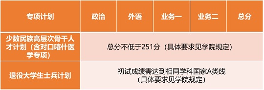 參加“大學(xué)生志愿服務(wù)西部計劃”、“三支一扶計劃”(支農(nóng)、支教、支醫(yī)和扶貧)、“選聘高校畢業(yè)生到村任職”、“農(nóng)村義務(wù)教育階段學(xué)校教師特設(shè)崗位計劃”和“赴外漢語教師志愿者”并完成服務(wù)期、考核合格的志愿者,按照國家政策對符合基本培養(yǎng)條件的考生予以照顧。