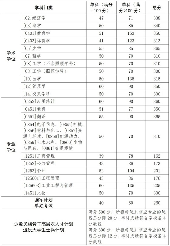 現(xiàn)將我校2024年碩士研究生入學(xué)考試復(fù)試基本分?jǐn)?shù)線(xiàn)發(fā)布如下: