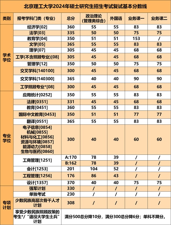 | 北京理工大學(xué)2024年碩士研究生招生考試 復(fù)試基本分?jǐn)?shù)線 |