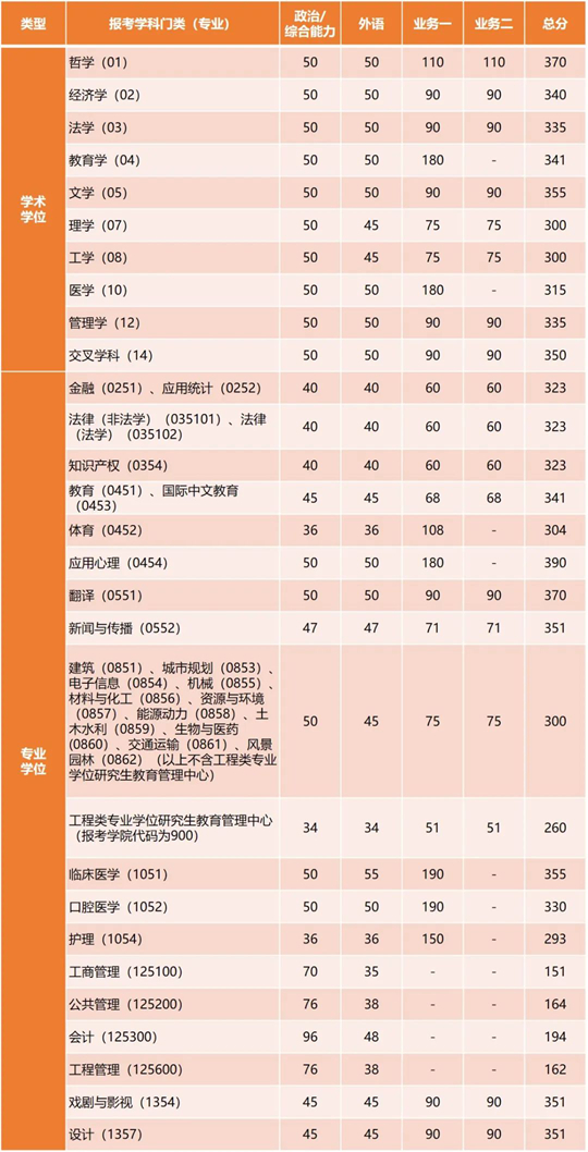 根據(jù)教育部有關(guān)文件精神,結(jié)合報(bào)考情況,同濟(jì)大學(xué)招生領(lǐng)導(dǎo)小組經(jīng)會(huì)議研究決定,同濟(jì)大學(xué)2025年全國(guó)碩士研究生招生考試進(jìn)入復(fù)試的初試成績(jī)基本要求如下: