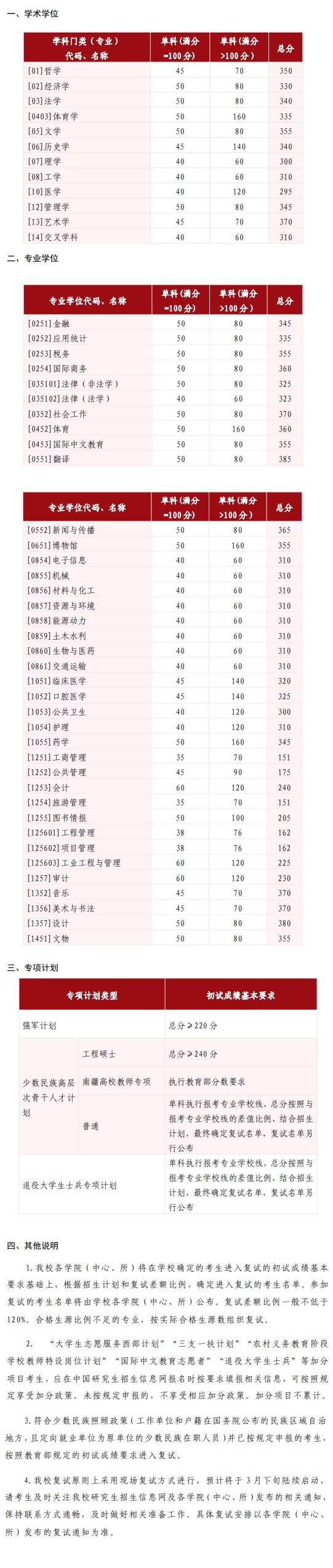 山東大學(xué)2025年碩士研究生招生考試考生進(jìn)入復(fù)試的初試成績(jī)基本要求