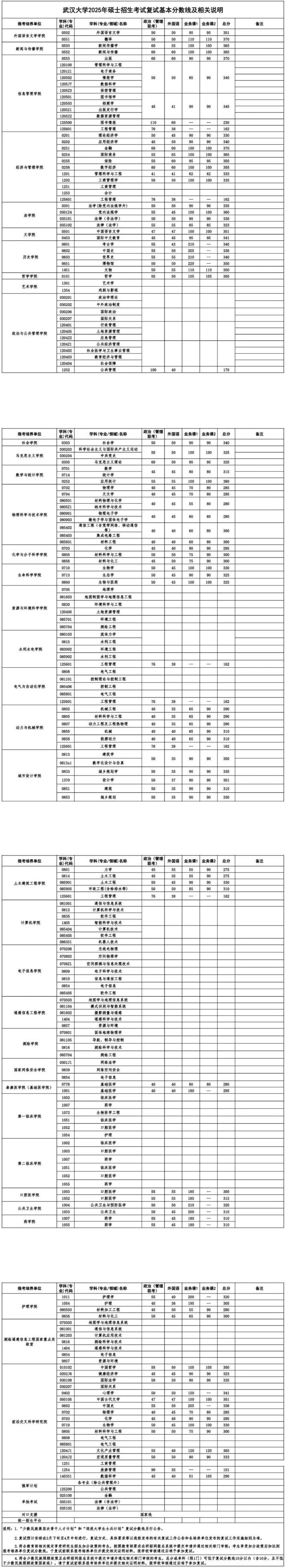 武漢大學(xué)2025年碩士招生考試復(fù)試基本分?jǐn)?shù)線及相關(guān)說明.pdf