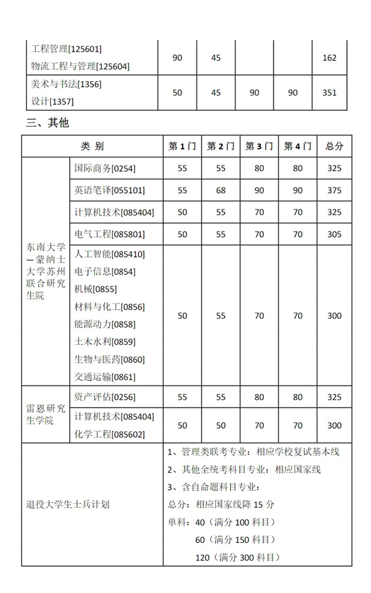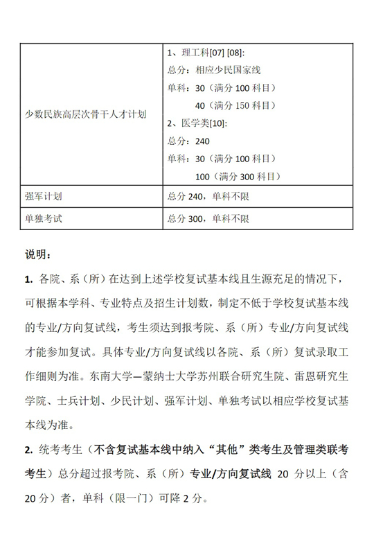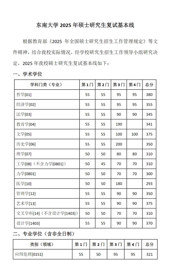 東南大學(xué)2025年碩士研究生復(fù)試基本線