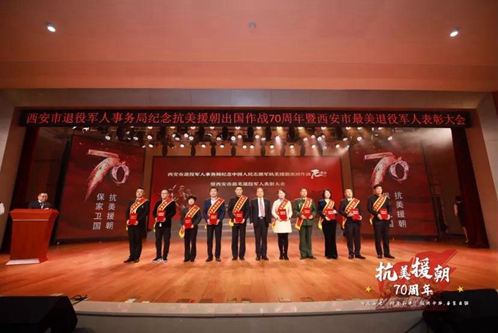 為表彰最美退役軍人,10月27日,西安市退役軍人事務(wù)局舉行了紀(jì)念抗美援朝出國作戰(zhàn)70周年暨西安市“最美退役軍人”表彰大會(huì)。