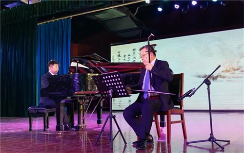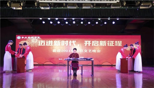 隨后,由藝術(shù)團(tuán)街舞隊杜瑩、楊藝璇、李佳穎等同學(xué)帶來街舞《chin》,大家揮動雙手、變換腳步,不時騰空躍起;旋轉(zhuǎn)的飛舞,展示著青春的力量,展示著年輕的思源人在青春的追夢路上從未停歇;校園廣播電視臺同學(xué)趙雅、王嘉寧、何卓倫帶來朗誦《永不消逝的聲音》,給現(xiàn)場觀眾展示了那座屬于中國共產(chǎn)黨的第一座廣播電臺——延安新華廣播電臺的成立故事,四位同學(xué)堅定有力的聲音不時博得觀眾陣陣掌聲。由郝麗娜老師帶來的歌曲《幸福中國一起走》,動感的音樂節(jié)奏,將會場帶入新年的氣氛;由公共藝術(shù)教育中心丁挺戰(zhàn)、丁偉老師帶來的二胡鋼琴合奏《二泉映月》 《賽馬》,精湛的表演感染了大家,帶引觀眾時而情緒低沉,時而熱情高亢兩種絕然不同意境,展示了音樂的獨(dú)特魅力。