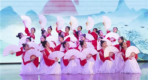 董雅男老師、趙梓淳老師帶來的經(jīng)典歌曲《陽光路上》,音域?qū)拸V,激越昂揚(yáng),帶領(lǐng)觀眾們仿佛迎著朝陽,走在通往2021年的陽光路上,再續(xù)寫華麗篇章;藝術(shù)團(tuán)舞蹈隊王玉、何小婷等同學(xué)帶來的群舞《心戀》仿佛用素描勾勒出愛情最羞澀的模樣;最后,歌曲《相親相愛》,唱出了美麗思源是師生相親相愛的地方,華夏民族也是相親相愛的國度,表達(dá)了人民群眾相親相愛就能建設(shè)偉大祖國的心聲,給整場晚會畫上圓滿的句號。