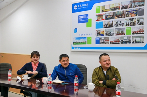 劉明理部長向來賓介紹了學校勞模創(chuàng)新工作室目前的籌建情況;計科系教授賈志東匯報了所負責工作室在研的成都市科技局2020年重大示范項目進展情況;科研管理部常務副部長巫家敏匯報了我校申報科普基地的進展情況。
