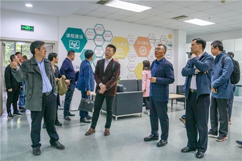 在座談會(huì)后雙方前往學(xué)校展廳、數(shù)字藝術(shù)系工作室、實(shí)驗(yàn)實(shí)訓(xùn)中心、SOVO大學(xué)生創(chuàng)業(yè)中心等地進(jìn)行實(shí)地考察,并在參觀過程中交流了經(jīng)驗(yàn)和意見。