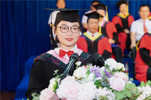 畢業(yè)生代表,文學院17級漢語言文學2班虞詩慧同學說:“感謝思源給了我揮斥方遒、散發(fā)光芒的舞臺,讓我得到了更好的成長。是你讓我沐浴著清晨的第一縷陽光,伴著瑯瑯讀書聲漫步在思源湖旁;是你讓我在安靜的自習室,暢游在知識的海洋……在這里,實現(xiàn)了我考研的夢想,我們一定會努力奮斗,自強不息,為實現(xiàn)自己的夢想,為實現(xiàn)中華民族的偉大復興貢獻自己的全部力量!