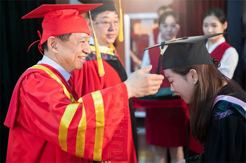 畢業(yè)典禮后,舉行了學位授予儀式。西安思源學院校長、學士學位評定委員會主席周延波,校黨委書記朱君強,副校長趙惠霞、管忠民、馬曉燕等學校領(lǐng)導、學位評定委員會委員、各二級學院院長及導師代表為畢業(yè)生頒發(fā)學位證書并撥穗正冠。