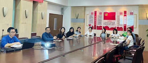 吳麗鎬(左一)組織教研室老師召開座談會現(xiàn)場