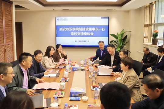 3月25日上午,西安歐亞學(xué)院董事長胡建波、副校長李正、副書記張軍宏、副校長張樂芳、教務(wù)處處長張娜、基建處處長雷春妮、后勤集團總經(jīng)理助理強建旗一行到西安翻譯學(xué)院參觀交流,受到了西安翻譯學(xué)院董事長丁晶的熱情接待。
