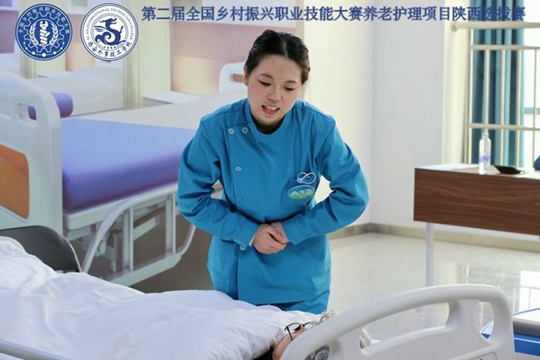 本次大賽主題為“展技能風(fēng)采,促鄉(xiāng)村振興”,分為職工組和學(xué)生組兩個(gè)賽道。競(jìng)賽共分日間照護(hù)、養(yǎng)老機(jī)構(gòu)及居家照顧三個(gè)模塊,主要考察選手根據(jù)所給案例,利用賽場(chǎng)環(huán)境、設(shè)備和物品,在標(biāo)準(zhǔn)化老人(真人)的配合下,完成不同養(yǎng)老場(chǎng)景下的技能操作、健康教育、人文關(guān)懷、溝通交流及突發(fā)情況應(yīng)對(duì)等綜合能力。職工組前三名可授予“陜西省技術(shù)能手”稱(chēng)號(hào),學(xué)生組前三名可認(rèn)定養(yǎng)老護(hù)理員高級(jí)工。