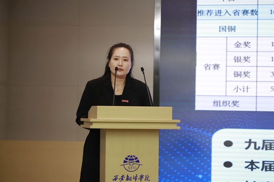 獲獎學(xué)生代表曾焰玲分享了參賽的心路歷程。她首先向長期以來支持創(chuàng)新創(chuàng)業(yè)競賽的校領(lǐng)導(dǎo)和部門表達了由衷的感謝、向耐心指導(dǎo)和無私奉獻的指導(dǎo)教師們表達了衷心的感激,并表示,未來將充分發(fā)揚西譯學(xué)子的精神風(fēng)貌、勇?lián)鷷r代青年的責(zé)任,以比賽為契機、追尋夢想、實現(xiàn)價值,用青春書寫最精彩的篇章。優(yōu)秀指導(dǎo)教師代表李寶楠老師分享了指導(dǎo)比賽的經(jīng)驗。他首先對學(xué)校領(lǐng)導(dǎo)及相關(guān)部門的大力支持和幫助表達了誠摯的感謝、對所有獲獎的同學(xué)們表達了熱烈的祝賀、對付出辛勤努力的指導(dǎo)教師們表達了衷心的感激。李寶楠表示,希望同學(xué)們能夠不斷挑戰(zhàn)自我、勇于創(chuàng)新、勇于實踐、相互支持、共同進步。