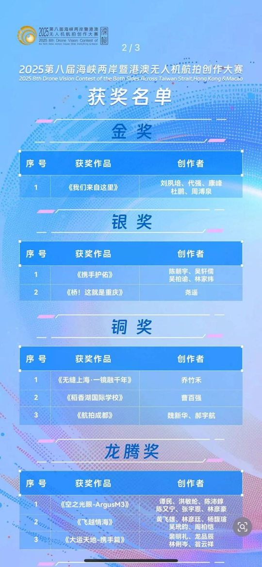 2025年8月27日,第八屆海峽兩岸暨港澳無人機航拍創(chuàng)作大賽頒獎儀式在深圳龍崗圓滿落幕。西安歐亞學(xué)院文化傳媒學(xué)院無人機影像工坊師生團隊創(chuàng)作的作品《我們來自這里》,在來自兩岸暨港澳的上百名創(chuàng)作者激烈角逐中脫穎而出,斬獲大賽最高榮譽——金獎,展現(xiàn)了西安歐亞學(xué)院文化傳媒學(xué)院在無人機航拍領(lǐng)域的專業(yè)實力。
