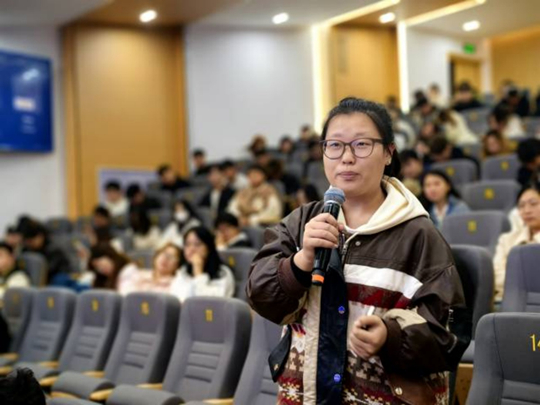 隨后,國(guó)際交流學(xué)院劉一弘院長(zhǎng)結(jié)合自身在德國(guó)FOM大學(xué)的訪學(xué)經(jīng)歷,分享了跨文化交流中的觀察與感悟。她從學(xué)術(shù)氛圍、教學(xué)理念、師生互動(dòng)等多個(gè)維度,對(duì)比了中德教育的異同,為在場(chǎng)學(xué)生開(kāi)展跨文化交流提供了全新的視角。
