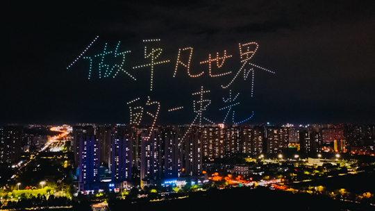 當(dāng)晚最為震撼和驚喜的環(huán)節(jié),當(dāng)屬666架無(wú)人機(jī)騰空而起,以光為畫(huà)筆,拼出“歐亞30歲生日快樂(lè)”“和而不同”“做平凡世界的一束光”等字樣,以及歐亞1995-2025的時(shí)光軌跡、校園標(biāo)志建筑和巨型的生日蛋糕,照亮雨后初晴的夜空,點(diǎn)亮歐亞光之盛典最動(dòng)人的篇章。據(jù)了解,這些無(wú)人機(jī)表演是由1998級(jí)校友、河南校友會(huì)會(huì)長(zhǎng)葉百海與校友楊鵬程特別贊助。