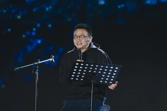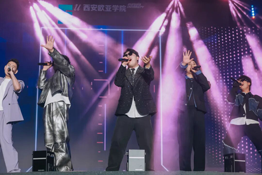 隨后,胡建波和副校長(zhǎng)李正、吉他社的同學(xué)一起,演唱了影響一代人的搖滾金曲《藍(lán)蓮花》,用音樂(lè)致敬30年的青春。歌聲響起,燈光星海閃爍。那一刻,音樂(lè)不再只是旋律,而是一種力量——來(lái)自歐亞的信念與精神。歌聲穿越時(shí)間,連接了30年的追夢(mèng)者,也照亮了此刻的青年面龐。