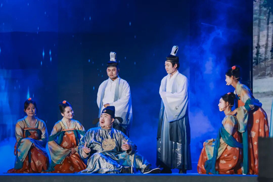 “唐詩(shī)里的長(zhǎng)安,是朝思暮想,也是蕩氣回腸……”話劇團(tuán)表演者衣著漢服,借現(xiàn)代話劇的敘事語(yǔ)言,探索長(zhǎng)安這片與歐亞共生的土壤,拾起古人對(duì)世界的感知以及生活的熱愛(ài)。