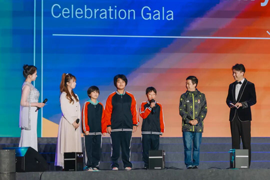 “長(zhǎng)期主義”的理念,也影響著歐亞人“利他”品格的形成。來(lái)自會(huì)計(jì)金融學(xué)院、Xdea青年社區(qū)2022級(jí)的孫瑪馨怡,分享了參與三原縣東周兒童村志愿服務(wù)的經(jīng)歷。在長(zhǎng)期的聯(lián)系和陪伴中,這里的孩子們已與志愿者建立起深厚的情誼。東周兒童村的老師郭東方與三位孩子——力來(lái)、王露曼、約則你拉也來(lái)到晚會(huì)的舞臺(tái)上,分享了他們和歐亞志愿者之間的故事,并為30歲的歐亞送上生日祝福。