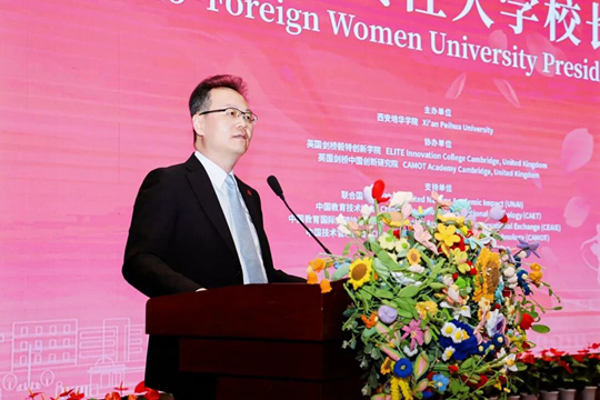 在論壇開幕式上,西安培華學(xué)院理事長姜波博士對與會嘉賓表示熱烈歡迎與衷心感謝。他在致辭中回顧了西安培華學(xué)院自1928年建校以來,近百年致力于女性教育與職業(yè)發(fā)展的歷程。他指出,學(xué)校創(chuàng)辦之初即以“解放社會底層女性,推動其在經(jīng)濟(jì)與人格上實(shí)現(xiàn)獨(dú)立”為使命,并于1984年恢復(fù)成立了改革開放后中國第一所女子大學(xué)——西安培華女子大學(xué),成為中國現(xiàn)代女性職業(yè)教育的重要里程碑。在推動女性教育國際化的進(jìn)程中,西安培華學(xué)院已與全球多個國家的多所高校建立了合作關(guān)系,旨在加強(qiáng)女性領(lǐng)導(dǎo)力、學(xué)術(shù)力與創(chuàng)新力的國際培養(yǎng)。他強(qiáng)調(diào),女性是影響家庭、社會乃至世界和平與發(fā)展的重要力量,因此需要男女?dāng)y手共同推進(jìn)教育事業(yè)。在當(dāng)今世界,高等教育工作者應(yīng)匯聚智慧,積極推動教育改革與國際合作。