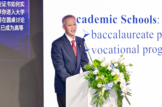 10月18日下午在圖書(shū)館報(bào)告廳舉行的共生·共創(chuàng)·共成長(zhǎng)——產(chǎn)教融合、協(xié)同育人論壇,邀請(qǐng)了英國(guó)伯明翰大學(xué)學(xué)院副校長(zhǎng),工程、數(shù)字化與可持續(xù)建筑領(lǐng)域執(zhí)行院長(zhǎng)Rosa Wells,北京大學(xué)教育學(xué)院院長(zhǎng)閻鳳橋,北京大學(xué)中國(guó)教育財(cái)政科學(xué)研究所所長(zhǎng)王蓉,蘭州大學(xué)高等教育研究院院長(zhǎng)盧彩晨,中國(guó)新高教集團(tuán)董事長(zhǎng)李孝軒,廈門(mén)南洋職業(yè)學(xué)院創(chuàng)辦人、校長(zhǎng)魯加升,重慶移通學(xué)院黨委書(shū)記何先剛,安徽三聯(lián)學(xué)院董事長(zhǎng)余皖生,云南翰文教育集團(tuán)副董事長(zhǎng)楊鑫,黃河科技學(xué)院黨委副書(shū)記趙會(huì)利,溫州肯恩大學(xué)副校長(zhǎng)楊毅欣等50余所高校代表;華為公共事業(yè)軍團(tuán)副總裁孫鵬飛,奇安信校企合作副總監(jiān)閆軍霞,復(fù)星旅文人力資源總監(jiān)黃佳,西部電影集團(tuán)總經(jīng)理助理、西影文旅公司董事長(zhǎng)閆禹,西安沉浸奇觀科技有限公司總經(jīng)理馮博等100余家企業(yè)代表;西安市遠(yuǎn)東一中、西安東儀中學(xué)、西安市錦園中學(xué)、咸陽(yáng)市育才中學(xué)、陜科大強(qiáng)化中學(xué)、咸陽(yáng)中學(xué)、寶雞市渭濱中學(xué)等30余所高中代表等累計(jì)200余人參加。西安歐亞學(xué)院董事長(zhǎng)胡建波,黨委書(shū)記趙國(guó)華,副校長(zhǎng)張樂(lè)芳、王艷出席。論壇由西安歐亞學(xué)院副校長(zhǎng)李正主持。