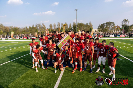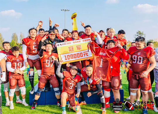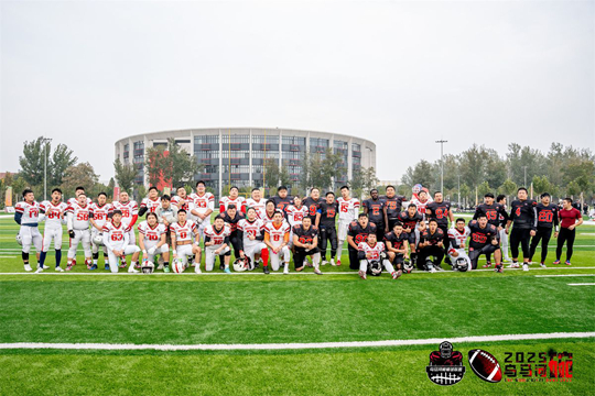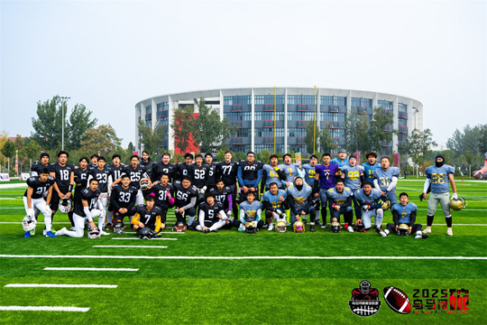 “達(dá)陣了!達(dá)陣了!”10月26日,山西太谷烏馬河畔,嘹亮的終場(chǎng)哨響和全場(chǎng)觀眾起立的歡呼聲劃破秋日長空,2025“烏馬河碗”橄欖球賽在全國高校唯一標(biāo)準(zhǔn)美式橄欖球場(chǎng)落下帷幕。此次比賽歷時(shí)3天,匯聚了沈陽獵人隊(duì)、北京大學(xué)生聯(lián)隊(duì)、呼和浩特蒙戈球隊(duì)、太原晉衛(wèi)軍隊(duì)、石家莊解放者隊(duì)及晉中信息學(xué)院龍隊(duì)六路精英,來自中國、塞爾維亞、德國、瑞典4個(gè)國家10余個(gè)城市的200余名球員,用極致的沖撞讓晉中信息學(xué)院的熱血與荷爾蒙“嚴(yán)重超標(biāo)”。經(jīng)過3天的“荷爾蒙碰撞”,太原晉衛(wèi)軍隊(duì)在巔峰對(duì)決中力克強(qiáng)敵石家莊解放者隊(duì),捧起了象征最高榮耀的冠軍獎(jiǎng)杯。