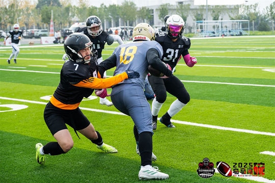 10月26日,“烏馬河碗”迎來最終決戰(zhàn)。冠軍爭奪戰(zhàn)在太原晉衛(wèi)軍與石家莊解放者之間展開,太原晉衛(wèi)軍延續(xù)了其小組賽階段的鐵血風(fēng)格,防守陣型密不透風(fēng),屢次在關(guān)鍵時(shí)刻遏制住了解放者隊(duì)凌厲的邊路進(jìn)攻。而在進(jìn)攻端,他們依靠精準(zhǔn)的配合和強(qiáng)大的地面推進(jìn)能力,不斷消耗對(duì)手防線。