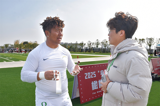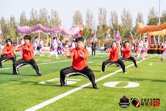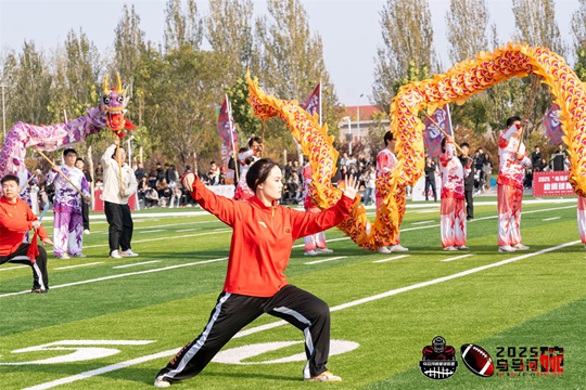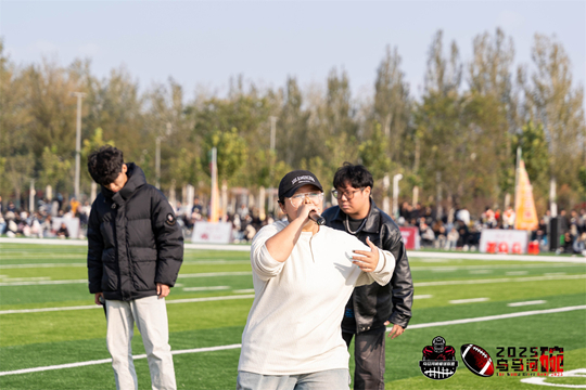 “烏馬河碗”橄欖球賽場(chǎng)上,沈陽獵人隊(duì)中的樊晨作為全場(chǎng)唯一的一名女性隊(duì)員,在賽場(chǎng)上奮力防守對(duì)方的男隊(duì)員,用實(shí)力證明這片賽場(chǎng)同樣屬于她們。決賽“中場(chǎng)秀”燃爆全場(chǎng),激情澎湃的MC喊麥與原創(chuàng)Rap Live秀將賽場(chǎng)瞬間變?yōu)榫扌吐短霯ive現(xiàn)場(chǎng);晉中信息學(xué)院武術(shù)隊(duì)的剛勁威武與運(yùn)動(dòng)舞蹈隊(duì)的動(dòng)感活力完美交融,呈現(xiàn)出力與美的視覺沖擊。旋律響起,全場(chǎng)觀眾齊聲應(yīng)和,聲浪震天,將青春的熱血與激情徹底釋放,“中場(chǎng)不休,狂躁不止”——這是獨(dú)屬于烏馬河碗的熱血宣言!
