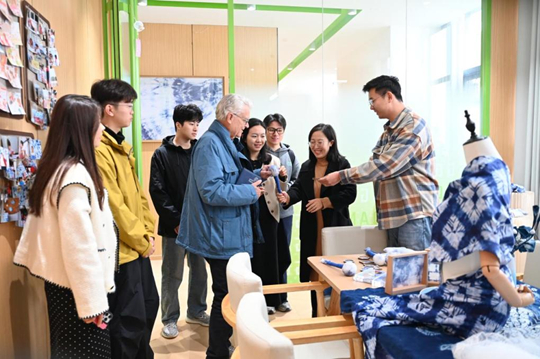在敢當(dāng)書院,他詳細(xì)了解“一站式”社區(qū)導(dǎo)師制的運行情況,并對學(xué)生自主設(shè)計的草本香錘、扎染等文創(chuàng)作品贊不絕口。穿梭于泰山非遺博物館與新言書院,Hans教授沉浸于地方文化的魅力,并重點考察了遠(yuǎn)景學(xué)院的辦學(xué)空間。
