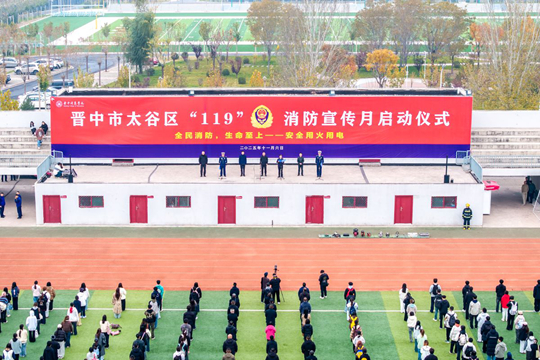 11月6日上午9時,晉中市太谷區(qū)“119”消防安全宣傳月啟動儀式在晉中信息學院運動場舉行。太谷區(qū)委常委、常務副區(qū)長程錫威、太谷區(qū)應急管理局局長史建忠、太谷區(qū)消防救援大隊大隊長張玉龍、教導員范超、晉中信息學院黨委書記張存?zhèn)、副校長傅永林出席啟動儀式。太谷區(qū)消專委成員單位代表及消防安全重點單位負責人、晉中信息學院師生共計700余人參加活動。