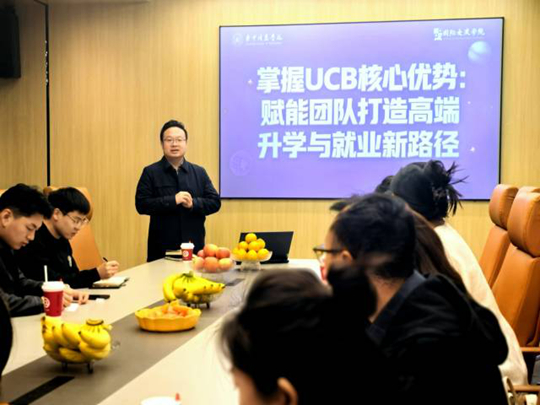 隨后,王老師來到國際交流學(xué)院,與全體教師進行深入交流。作為一所享有良好國際聲譽的院校,伯明翰大學(xué)學(xué)院在多個領(lǐng)域,特別是在商業(yè)管理等相關(guān)學(xué)科方面擁有強勁的實力和豐富的教學(xué)資源。王老師結(jié)合實例,生動展示了該校注重實踐應(yīng)用、鼓勵創(chuàng)新思維的教學(xué)模式,以及其國際化的學(xué)習(xí)環(huán)境為學(xué)生帶來的獨特成長體驗。王老師還就同學(xué)們關(guān)心的留學(xué)申請流程、條件要求、學(xué)習(xí)生活準備等方面提供了專業(yè)的指導(dǎo)和建議。