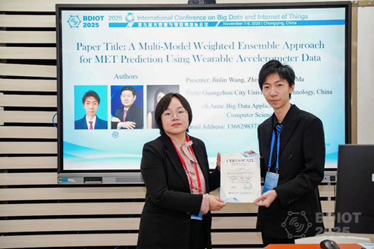11月8日,從第九屆大數(shù)據(jù)與物聯(lián)網(wǎng)國(guó)際會(huì)議(BDIOT 2025)傳來喜訊,廣州城市理工學(xué)院管理學(xué)院2022級(jí)大數(shù)據(jù)管理與應(yīng)用專業(yè)王瑾藺同學(xué)以第一作者身份發(fā)表題為《A