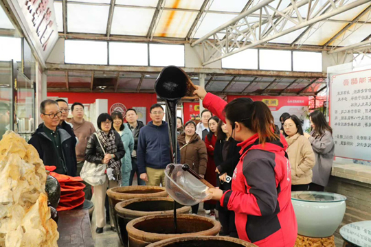 山西醋博園是一個集醋文化展示、生產(chǎn)工藝體驗和科研創(chuàng)新于一體的綜合性園區(qū)。在參觀過程中,三校四區(qū)一行人深入了解了醋博園的完整生產(chǎn)流程及豐富的文化展覽區(qū)域。從最初嚴格精細的原料篩選,到傳統(tǒng)與現(xiàn)代工藝結(jié)合的發(fā)酵陳釀過程,再到高效衛(wèi)生的自動化成品包裝環(huán)節(jié),每一道工序都充分彰顯了企業(yè)在質(zhì)量控制上的嚴謹態(tài)度、對傳統(tǒng)釀造技藝的匠心傳承,以及不斷推動技術(shù)升級與創(chuàng)新的企業(yè)精神。